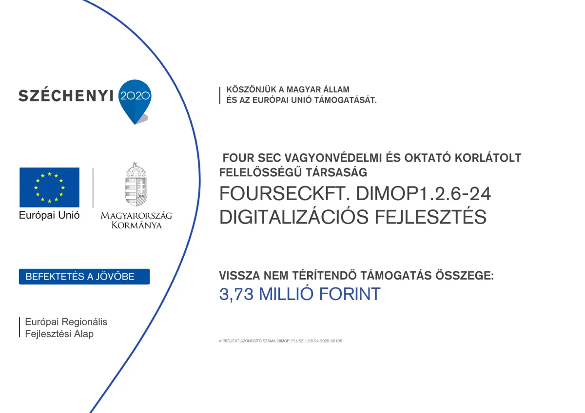 Kedvezményezett neve:  Four Sec Vagyonvédelmi és Oktató Korlátolt Felelősségű Társaság